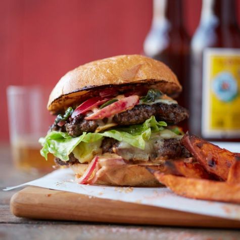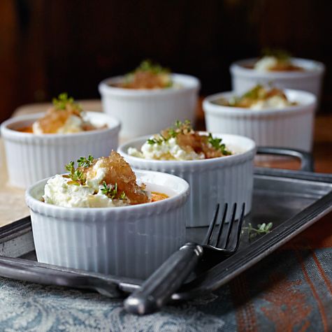 • Sweet Potato Latkes with Fig Jam and Blue Cheese