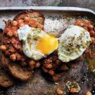 Slow-Cooked Chickpeas on Toast with Poached Eggs