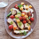 This simple chicken and tomato salad gains much of its flavor from a bright basil dressing, but the savory Parmesan polenta cubes steal the show, adding crunch and a hint of sweet cornmeal.