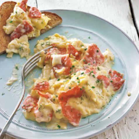 Variation: This scramble is equally delicious made with smoked trout, flaked into chunks, instead of the smoked salmon.