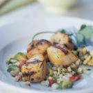Scallops are available year-round, but the supply is more plentiful in the summer, when the corn for the hot-weather salsa that accompanies them here is also abundant. Chipotle chilies, which are smoked dried jalapeños, are commonly available packed in cans in a vinegary chili sauce called adobo. They will add a pleasantly piquant and smoky accent to summertime's plump grilled scallops.