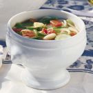 Add the pasta to the soup and cook until the pasta and cannellini beans are tender, about 15 minutes. Taste and adjust the seasonings with salt and pepper. Stir in the tomato paste. Stir 2 Tbs. of the pistou into the soup and ladle into warmed bowls. Serve the remaining pistou alongside.