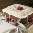 In a bowl, whisk together the milk and confectioners' sugar until smooth. Garnish the cake with the raspberries and drizzle the glaze over the cake.