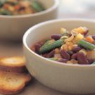 Return the pan to medium-high heat and warm the remaining 1 Tbs. olive oil. Add the carrot and leek to the remaining onion and sauté until the leek is tender, about 5 minutes. Reduce the heat to medium, stir in the paprika and garlic and cook, stirring, for 1 minute. Add the green beans, kidney beans and pureed onion and cook, stirring occasionally, until the beans are crisp-tender, 8 to 10 minutes.