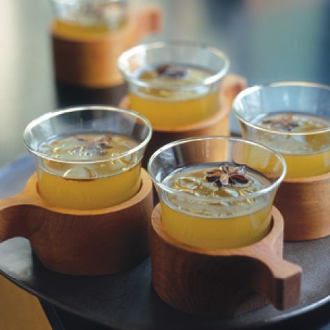 Who doesn’t love a hot toddy? This version gains a lovely flavor and aroma from toasted sesame oil, used in place of butter. We have also traded in the typical cinnamon, which can often be overpowering, for ginger and star anise.