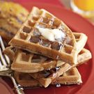 These waffles get a flavor boost from orange zest plus a medley of warming spices, including cinnamon, ginger and cloves. Drizzle the waffle with maple syrup and enjoy a delicious breakfast treat.