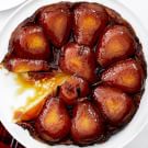 To serve, run a knife around the inside edge of the pan. Place a large flat serving plate upside down on top of the pan and invert the tart onto the plate, dislodging and replacing any pears that may have stuck to the pan. Cut into wedges and serve immediately, topping each serving with some of the whipped crème fraîche. Serves 8.