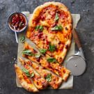 To give the classic Margherita pizza a spicy kick, we season the tomato sauce with red pepper flakes and a touch of cayenne. You’ll have some sauce left over; store in the refrigerator and make more pizzas later in the week. Or, for an easy dinner, reheat the sauce, toss with your favorite pasta, and sprinkle with grated Parmesan and chopped fresh basil.