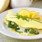 Sprinkle the cheese evenly over the omelette. Place the spinach and parsley on one half of the omelette and fold in half. Gently slide the omelette onto a plate and serve immediately.