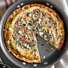 Slide the frittata onto a cutting board and garnish with oregano and cheese. Let the frittata rest for 5 minutes, then cut into slices and serve. Serves 8.