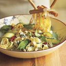 Transfer to warmed pasta bowls and sprinkle with the remaining goat cheese. Serve immediately. Serves 2.