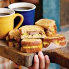 In our version of the classic pairing of steak and eggs, we tuck slices of rib-eye steak, scrambled eggs and cheddar cheese between slices of sourdough bread, then grill the sandwiches to crisp perfection.