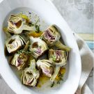 Baby artichokes are less prickly than their larger cousins that grow on the same plant, and typically they have not developed a fuzzy choke, both of which make them easier to prepare than the larger variety. In fact, in Italy they are even eaten raw, thinly sliced and tossed with lemon juice and olive oil. Here they are lightly cooked with lemon, garlic and herbs for a flavorful dish that speaks of spring.