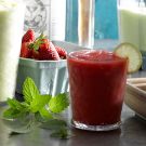 In a Vitamix blender, place all the ingredients in the order listed, with the strawberries on the bottom and the ice cubes on top. Blend on low 10 seconds, then gradually increase the speed to the highest setting until smoothly pureed, about 45 seconds. Serves 4.