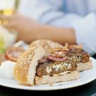 When stuffed with a savory filling, the basic burger takes on a whole new dimension. This recipe includes four different fillings to choose from. Two of them call for caramelizing a yellow onion, which is easy to prepare: In a fry pan over medium heat, warm 1 1/2 Tbs. olive oil. Add the chopped onion, cover and cook, stirring occasionally, until the onion is completely limp, 10 to 15 minutes. Uncover the pan, reduce the heat to medium-low and cook, stirring frequently, until the onion is golden brown and sweet, 35 to 45 minutes. Let cool before using.