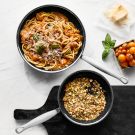 “There’s a moment in the summer when cherry tomato plants go crazy, producing so many tomatoes that it’s hard to keep up with them. This is the pasta for that moment!” explains Chef Joshua McFadden in his cookbook Six Seasons of Pasta. For this dish he strongly suggests using Sun Gold tomatoes, either ones you grow or can find at a market. The chef loves the gorgeous deep orange colour and says their flavour is sweeter and fruitier than that of any other cherry tomato he has tasted. “I’m addicted,” he adds. Any variety works well in this recipe, and feel free to use a mix of colours.