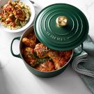 In a large Dutch oven over medium-high heat, warm the oil. Working in batches, add the chicken to the pan and sear, turning once, until deeply browned on both sides, about 4 minutes per side. Transfer to a plate and keep warm.
