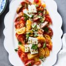 When it comes to ripe summer tomatoes, the less you mess with them, the better, and this recipe proves the point. A drizzle of olive oil and Champagne vinegar plus a sprinkling of feta, pistachios and fresh parsley allow the tomatoes’ fresh flavor to shine. It’s the type of salad that Williams Sonoma partner and style icon Aerin Lauder would serve at alfresco parties at her family’s home in the Hamptons.