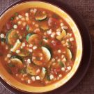 This colorful soup makes use of the best that summer has to offer. The tomato broth is partially pureed to add satisfying thickness to the finished dish.