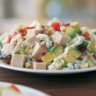 The classic Cobb combines crispy bacon, creamy avocado, rich blue cheese, chopped tomatoes, and chunks of chicken or turkey, providing a pleasing contrast of textures and tastes. Invented at the Brown Derby Restaurant in Los Angeles in the 1930s, the salad was named for the restaurant’s owner, Robert Howard Cobb. Here, we call for smoked turkey breast to enhance the flavor.