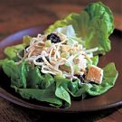 Line a platter with the lettuce leaves. Mound the turkey mixture atop the lettuce. Serve immediately. Serves 4.