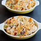 This retro casserole uses up leftover turkey in a tangle of egg noodles, button mushrooms and cheesy sauce—with delicious results. Baked in one pan, or divided into individual ramekins, it’s sure to become an annual post-holiday tradition. Use both white and dark turkey meat, as the dark meat will add moisture.