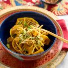 Noodles—the longer the better—are popular for Lunar New Year celebrations since they symbolize longevity, which makes this recipe from Kristina Cho, author of Mooncakes & Milk Bread, a perfect choice to celebrate the holiday. The key to making hand-pulled noodles, says Kristina, is to develop lots of gluten by kneading the dough twice and letting the dough rest so it softens and achieves maximum stretchability. Hand-pulled noodles are often paired with braised meats, but Kristina prefers a simpler version topped with what she calls “sizzle sauce.” She explains, “What goes into your sizzle is up to you. I normally like to include the trifecta of ginger, garlic and green onion. For spice I have red pepper flakes and for a peppery kick we have, well, peppercorns. A mix of black and Sichuan peppercorns provide depth and that tingly sensation, and cumin lends earthiness. Lemon zest is the least traditional addition to the sizzle, but I love the brightness it lends to the rich and savory dish.”