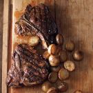The pairing of simply seasoned steak and potatoes never goes out of style. Here, thick bone-in steaks benefit from a brief stint over high heat on the grill, then being moved to a cooler area of the grill to finish cooking.