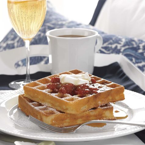 Belgian Waffles with Strawberry-Rhubarb Compote