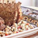 A pressure cooker shortens the overall cooking time for dried beans. Be sure to soak them in advance. This softens the beans and helps to ensure even cooking. Serve this warm salad with our racks of lamb, which are coated with a savory crust.