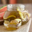 Set the watermelon mixture over high heat and bring to a boil. Reduce the heat to low and simmer until the rind turns somewhat translucent, 5 to 10 minutes. Discard the bag of spices. Spoon the watermelon mixture into the prepared jars, dividing the lemon slices and cinnamon sticks more or less evenly among the jars and leaving 1/4 inch of headspace.