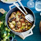 Bake until the stuffing is warmed through, 25 to 30 minutes. Remove the foil and continue baking until the stuffing is golden, about 15 minutes more. Serves 6.