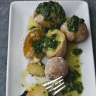 Mashed potatoes do a fine job of soaking up the flavors on a Thanksgiving plate. But for a departure from the norm, try boiled “wrinkled” potatoes form Chef Joshua Whigham. The technique hails from the Canary Islands, where the potatoes are traditionally served with piquant, vibrant sauces. Here, a bright acidic dipping sauce complements the potatoes and the rest of the meal.