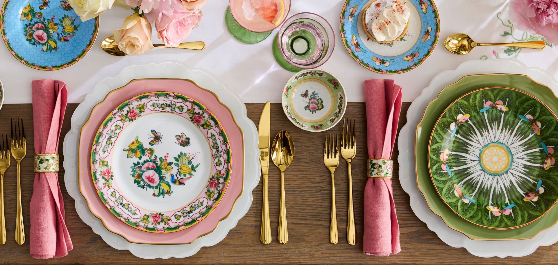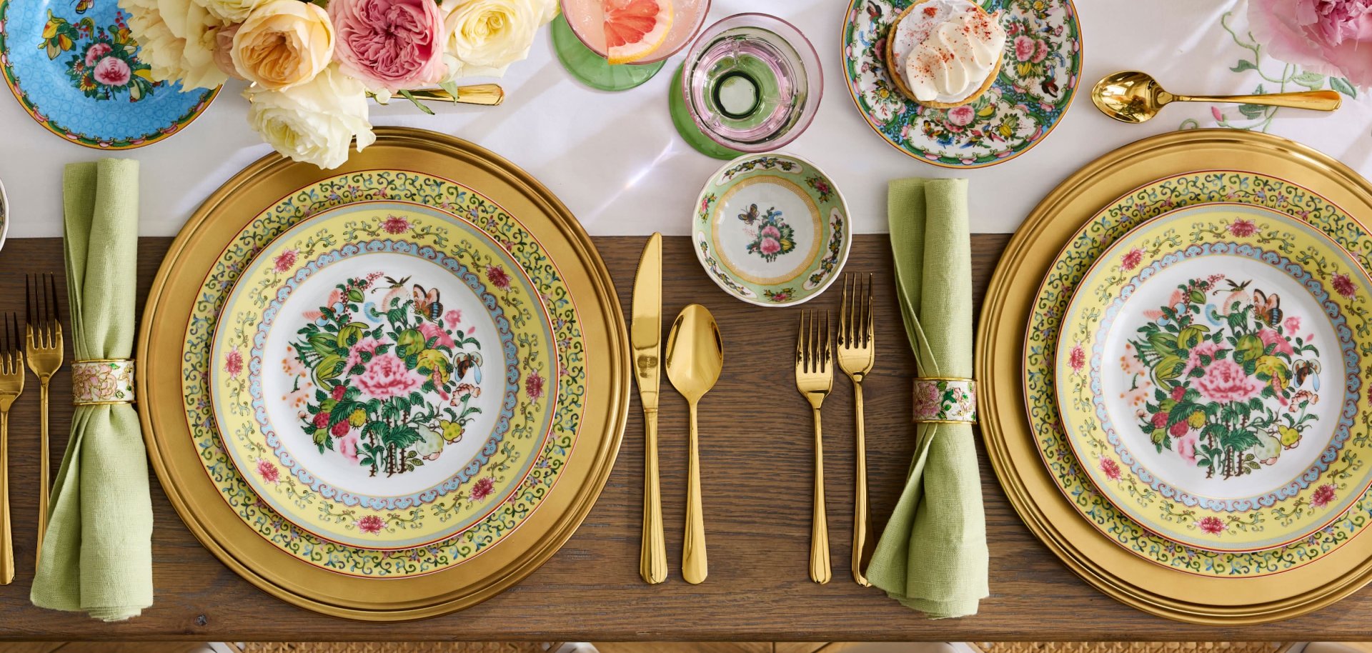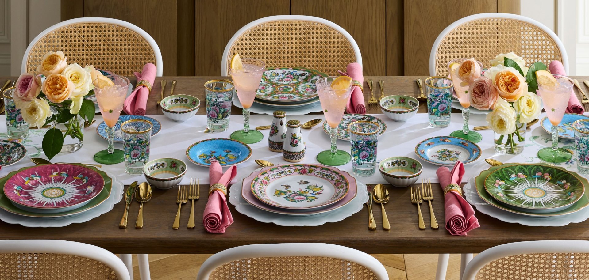 Round out your everyday essentials with dinner plates, bowls and mugs. Or infuse Famille Rose style into other kitchen items. Keep your clothes free from spills and splashes while you cook with our apron or include a hardmat at your next table setting. We even have a set of hand-cut glass tumblers detailed with the iconic flora and fauna motif you know and love.