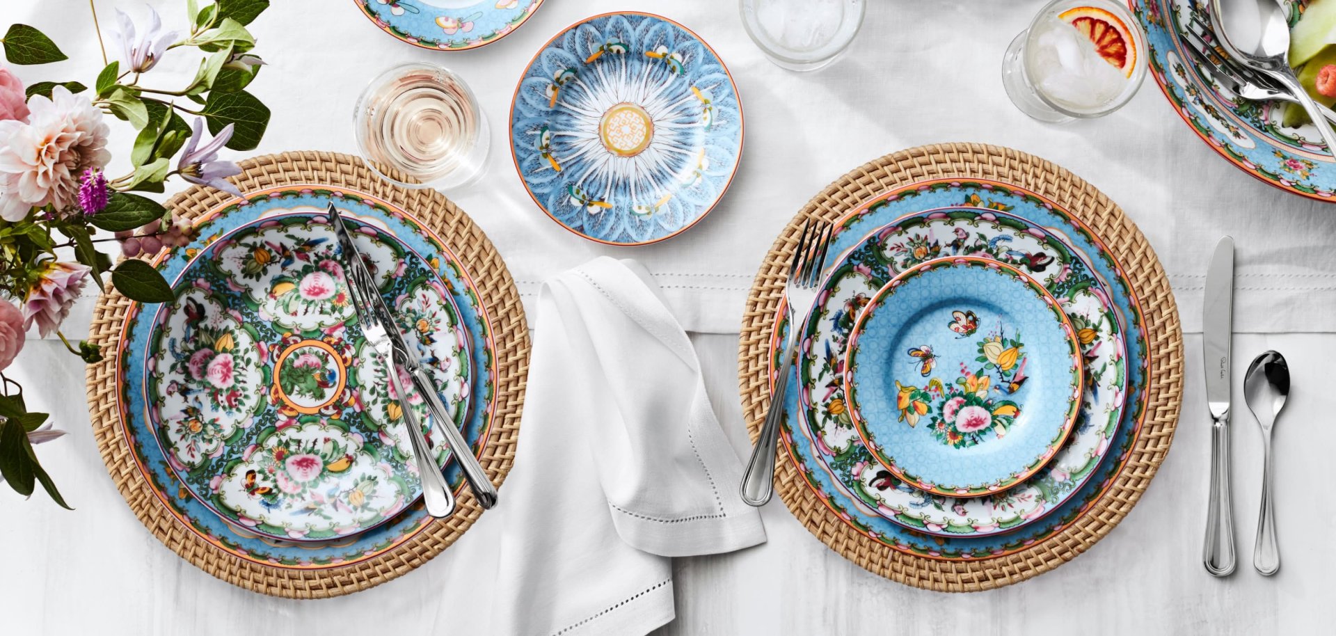 At Williams Sonoma Canada, our Famille Rose dining sets are hand-finished in vibrant colours and intricate patterns. Choose from mixed pink and green or mixed blue colour schemes. Our pieces are designed with an ornate flora and fauna theme that showcases bright blooms, butterflies and more. Plus, any trim, glaze or decals featured are applied by hand for a truly one-of-a-kind look.