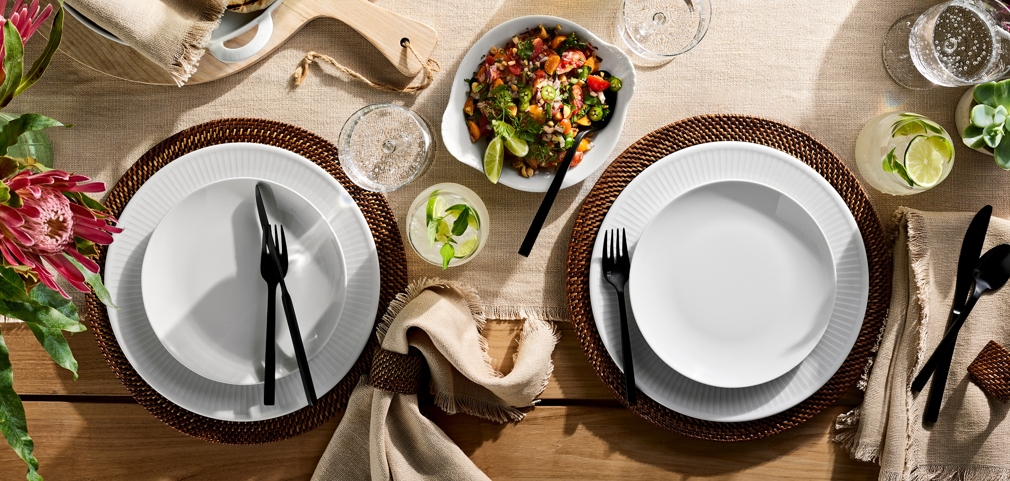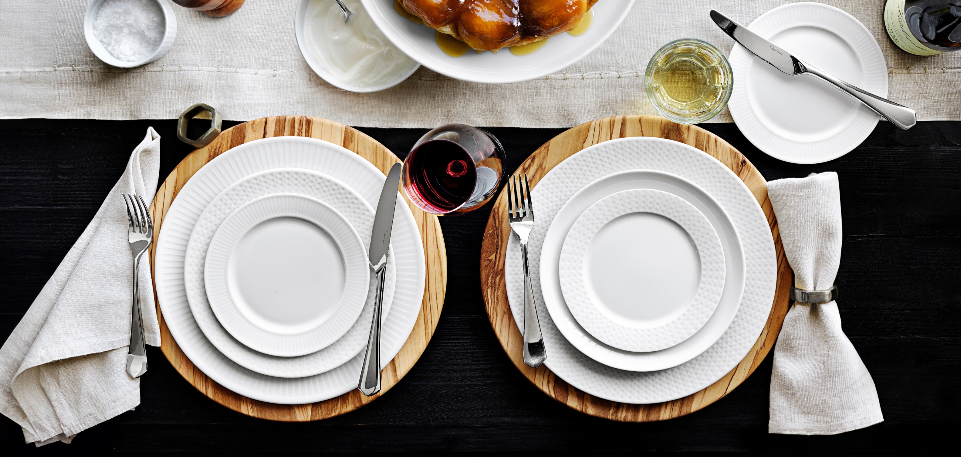 Perfect for everyday dinners and elegant celebrations, this mix-and-match French-made porcelain features ridged rims inspired by Grecian columns.